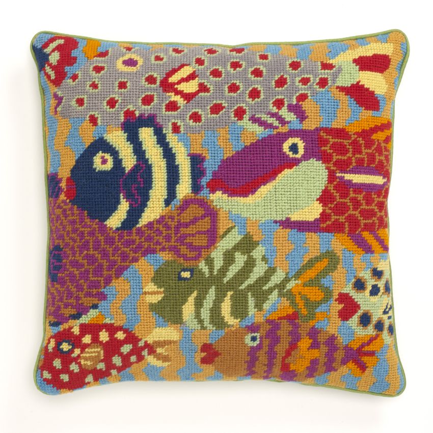 Brandon's cheerful design, based on one of his patchwork patterns, is stitched on 7.5 holes to the inch canvas with the wool used double so it grows quickly. A large, comfortable cushion.