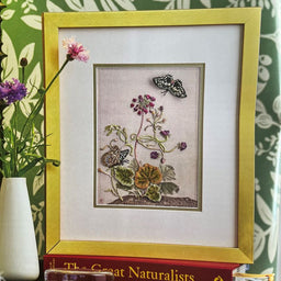 Floe the Fairy Penguin, a charming embellished felt doorstop graces the cover of this issue. Other projects include a cute pair of blue busgies, interesting botannical studies including stumpwork strawberries, threadpainted autumn leaves, and exquisite goldwork brooch and Campanula and Butterfiles in stumpwork and silk ribbon embroidery which is quite delightful. And for the practical stitcher you can use your counted whitework skills to make a very useful cover for your table light or magnifier.